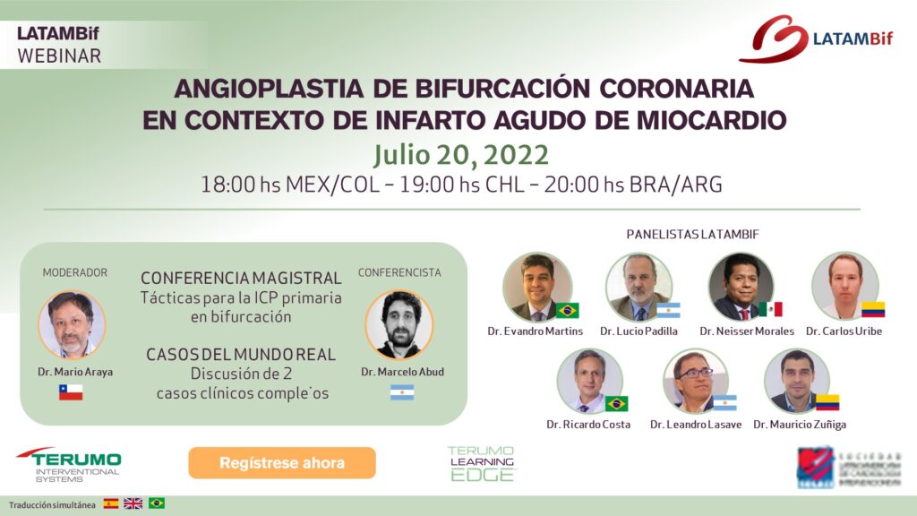 WEBINAR Angioplastia de bifurcación coronaria en contexto de infarto agudo de miocardio 15 Jul WEBINAR Novedades y complicaciones en el tratamiento de bifurcaciones Webinar Rincón del Fellow ¿Cómo abordar una bifurcación coronaria compleja con calcificación severa?